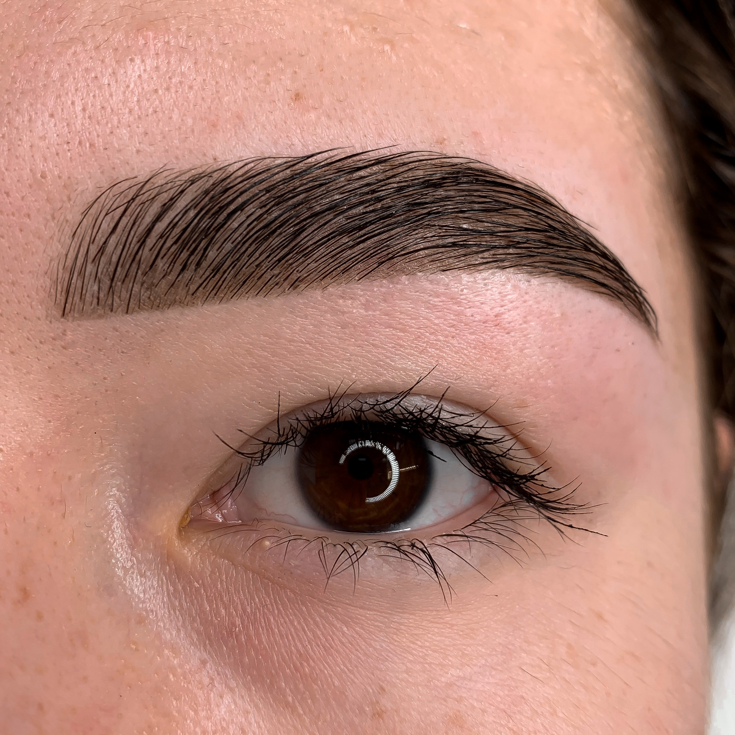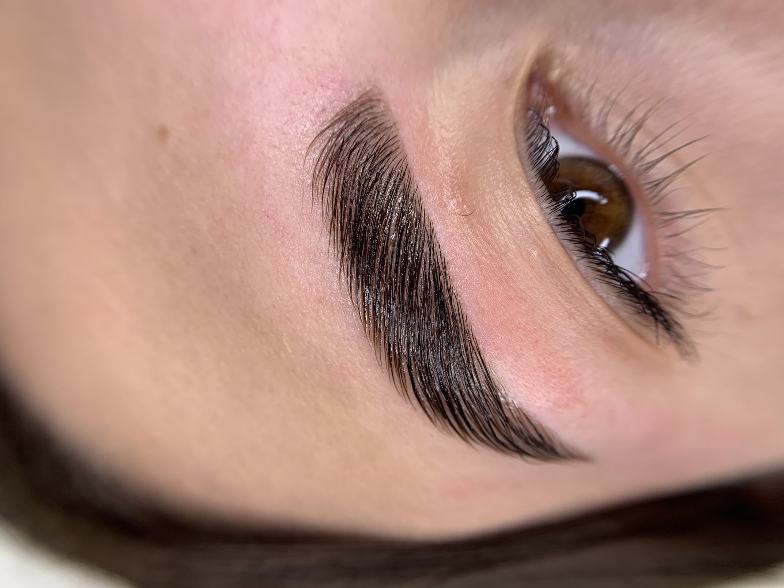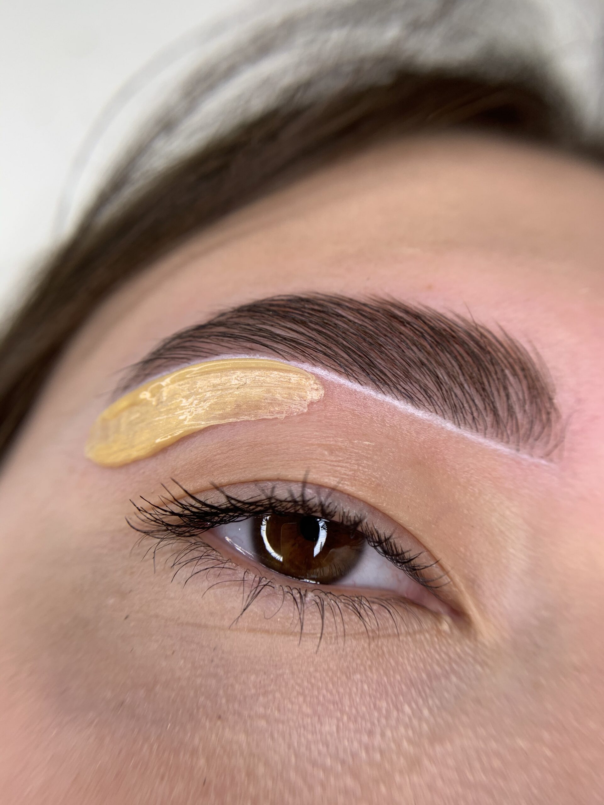 Eyebrow lamination, tining, and wax correction.