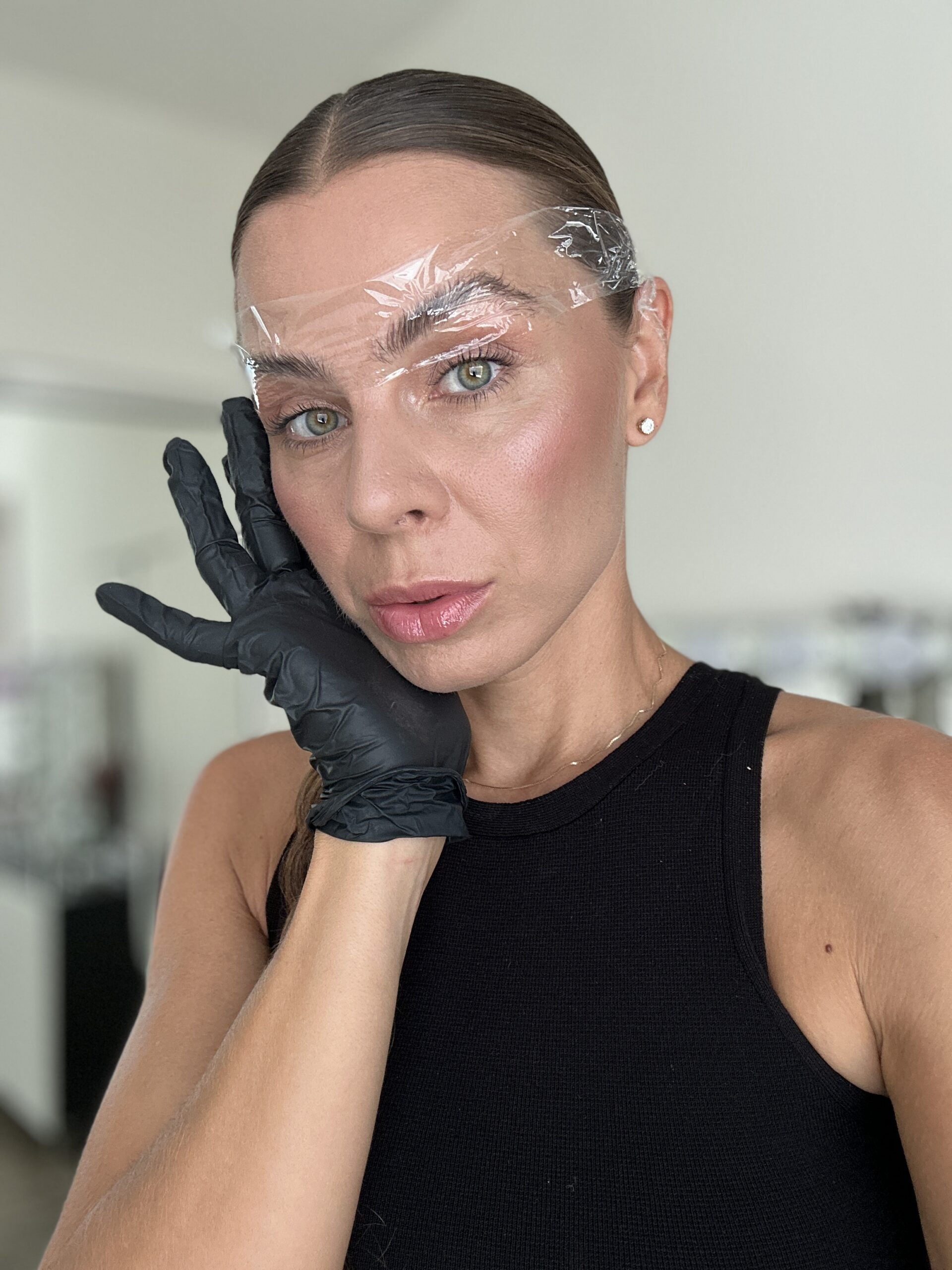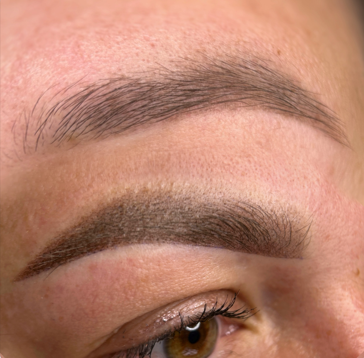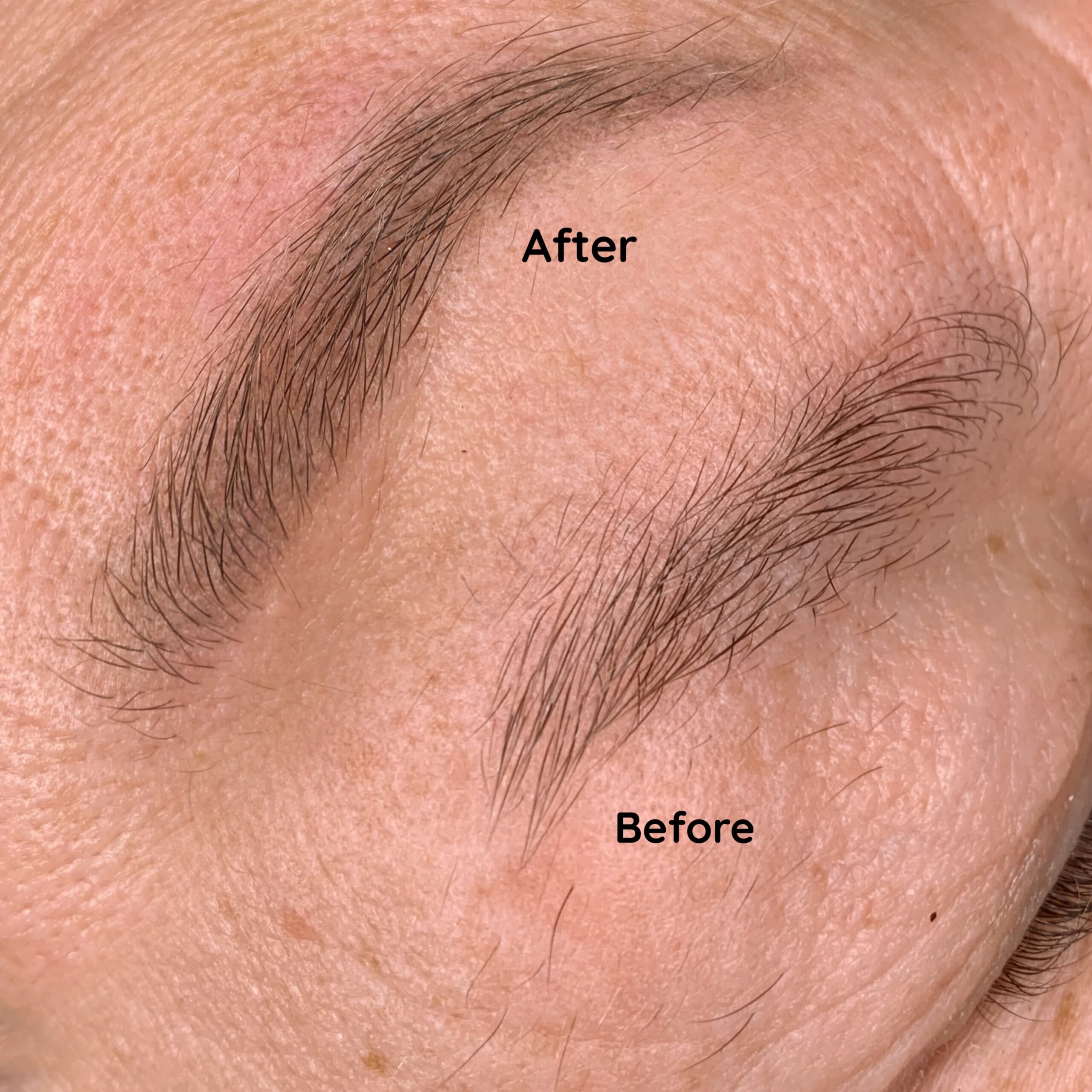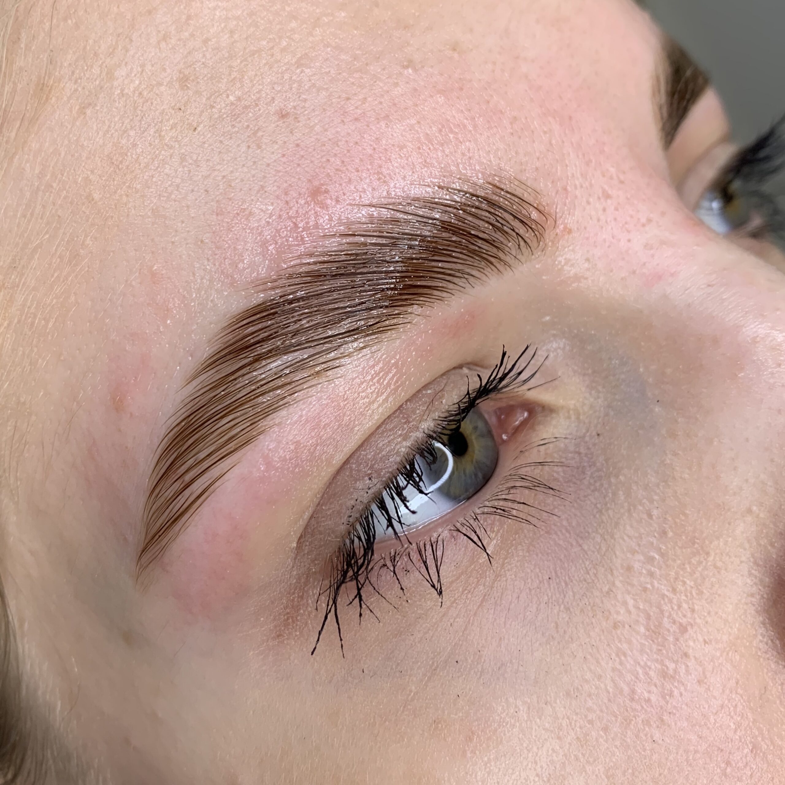 Eyebrow lamination, tining, and wax correction.
