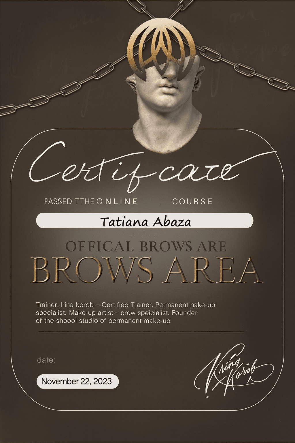 At your first appointment, you will receive a personalized brow-care guide. You will also be enrolled in my loyalty program — each visit brings you closer to additional privileges and bonuses.